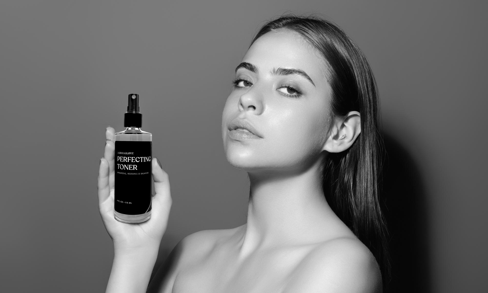 LuxeSkin Perfecting Toner is a hydrating & brightening facial mist with rose water, aloe, witch hazel & Vitamins A, C, E. It balances, restores & revitalizes. Clean and Vegan in a 4oz glass bottle.